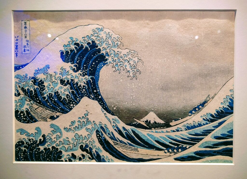 Enfin, c’était l’occasion d’admirer une des estampes de la Grande Vague de Kanagawa – de Hokusai, aux cotés d’œuvres qu’elle a elle-même influencées.